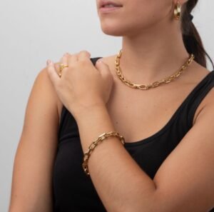 Collar elegante y atemporal, elaborado en acero inoxidable de alta calidad, resistente al agua e hipoalergénico. Diseñado para acompañarte en cada momento con estilo y delicadeza, añadiendo un toque de amor y sofisticación a tu look diario hecho en acero inoxidable resistente al agua.