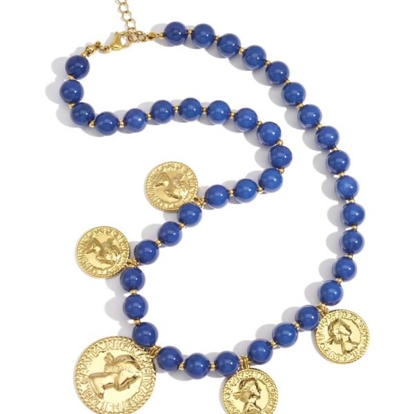 El Collar Imperia es una joya que evoca poder, elegancia y herencia clásica. Conformado por cuentas en tono burdeos intenso y adornado con medallones dorados de inspiración imperial, este diseño combina fuerza y sofisticación en perfecta armonía. Fabricado en acero inoxidable con detalles bañados en oro, es una pieza que destaca por su presencia y magnetismo. Ideal para elevar looks de día o de noche con un toque majestuoso y distintivo.