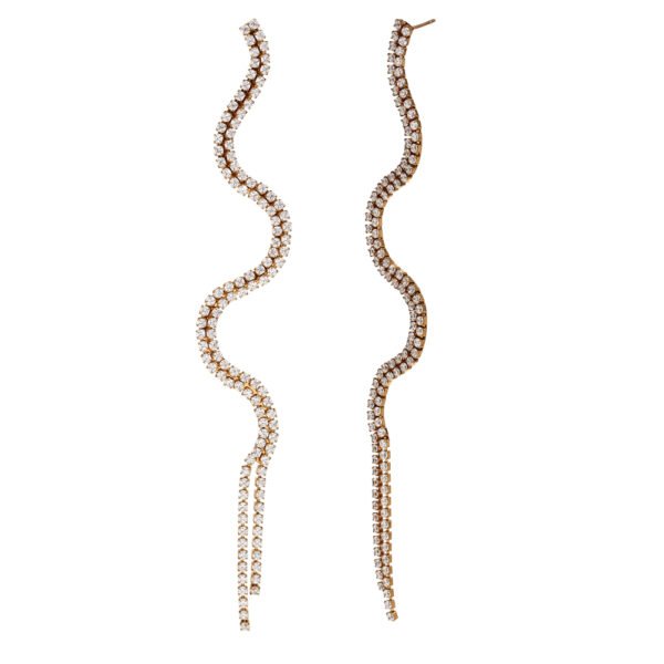 Los Pendientes Ondine capturan la esencia del movimiento y la luz. Su silueta ondulada, cubierta de brillantes circonitas, fluye con elegancia imitando el vaivén del agua y la feminidad en su forma más libre.